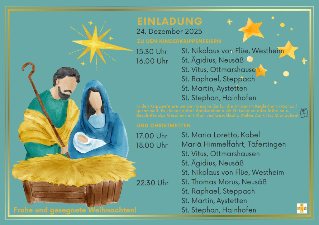 - Abend der Versöhnung Adventlicher Tag Aktionen Aktuelles Anbetung Aystetten Berufung Buße Ehe-und Familienseelsorge Eucharistische Anbetung Familien Familiengottesdienst Fastenzeit Grußwort Herz Jesu Holy Hour Jugend Jugendgottesdienst Jugendkreuzweg Karwoche Kirchen Kita Liturgie Mariä Himmelfahrt Ministranten Nachprimiz Organist Organisten Osterbrunnen Ostern Osternacht Osterweg Pfarreiengemeinschaft Spenden St. Martin St. Nikolaus von Flüe St. Thomas Morus St. Vitus Stellenangebot Stellenangebote Stellenanzeige Verabschiedung Weltjugendtag Weltmissionstag Zeltlager