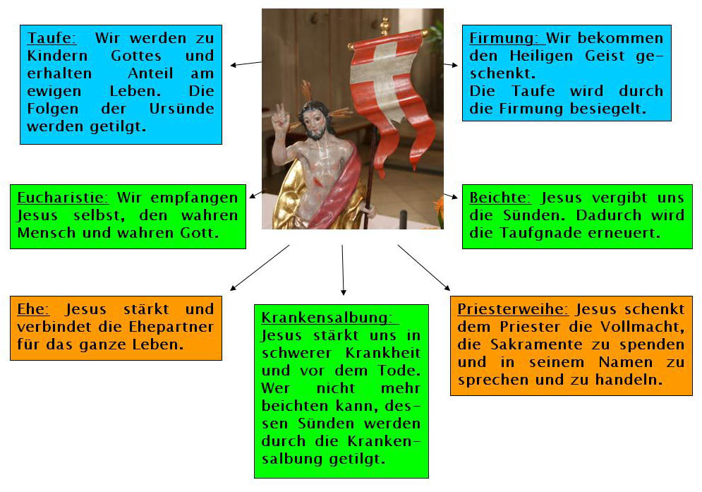 Wie Jesus uns konkret in den Sakramenten hilft und beisteht, kann man an folgendem Schaubild ersehen: