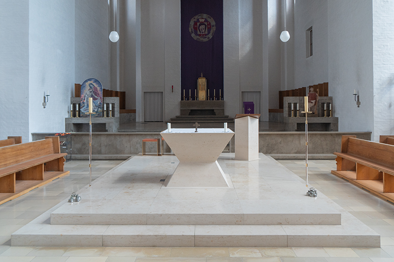 Volksaltar mit Altarraumerweiterung ca. 1972 – dabei teilweiser Rückbau der Kommunionschranke.