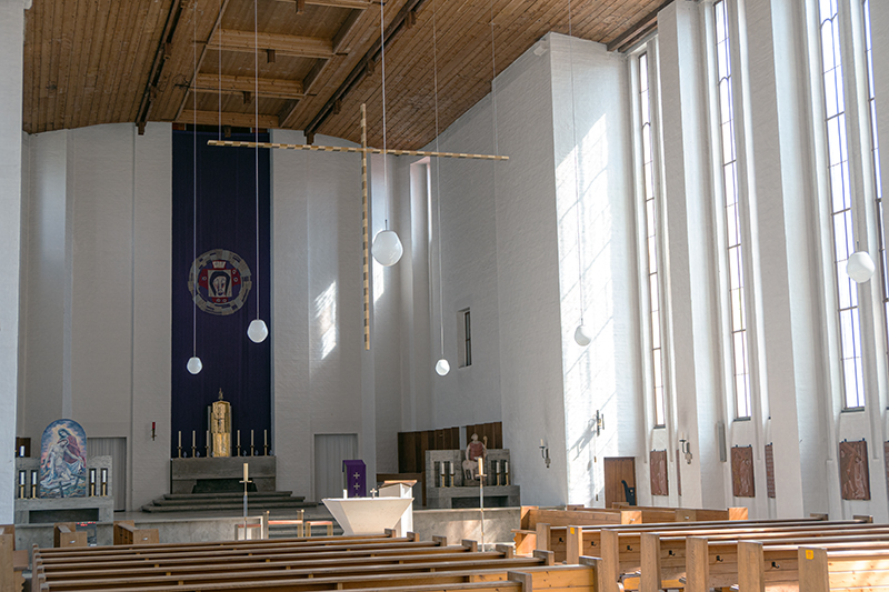 Volksaltar mit Altarraumerweiterung ca. 1972 – dabei teilweiser Rückbau der Kommunionschranke.
