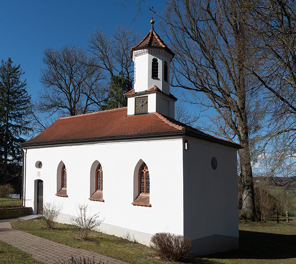 Der Stifter der Kapelle hat nach der Überlieferung bei einer Verwundung die beiden Heiligen um Hilfe angerufen und den Bau einer Kapelle zu ihrer Ehre versprochen. Nach der Wiedergenesung hat er dieses Versprechen dann auch eingelöst. Als die Kapelle im Jahr 1777 um 4,20 Meter nach Westen verlängert wurde, bekam sie auch einen neuen Altar mit der Darstellung der Anbetung der Heiligen Drei Könige. Geschnitzt wurde dieses Kunstwerk vom Augsburger Bildhauer Ignaz Wilhelm Verhelst.