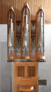 Seit 1978 erfreut uns die Orgel als „Königin der Instrumente“, mit ihrem Klang. Ausgesuchte Musik auf der Orgel lässt die hörende, feiernde und singende Gemeinde das Wort und das sakramentale Geschehen noch tiefer erleben und im Herzen erfassen. Die Orgel steht somit im Dienst der Verkündigung. Sie klingt zur Ehre Gottes und zur Freude der Versammelten. Die Orgel wurde von der Firma Gerhard Schmid, Kaufbeuren, gebaut und 1978 von Domkapitular Dr. Karlheinz Braun geweiht. Disposition: Im Hauptwerk sieben, im Brustwerk neun und im Pedal fünf Register.