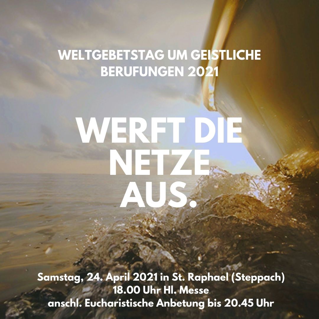 Unter dem Leitwort „Werft die Netze aus“ wollen auch wir uns am 24. April 2021 in das weltweite Gebet um geistliche Berufungen einklinken. Dazu laden wir Sie herzlich in die katholische Kirche St. Raphael...
